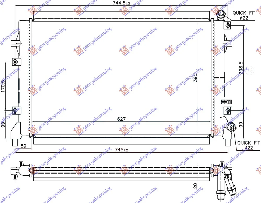 HLADNJAK MOTORA DODATNI 1.2/1.4 TSI BENZIN (627x395x20)